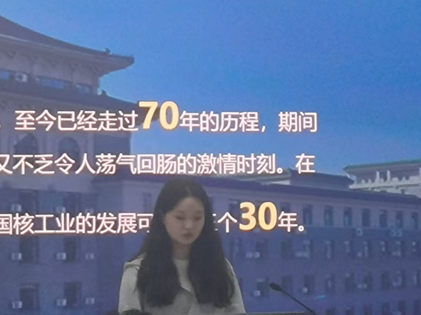 西安交通大学学生微宣讲团庞小龙以“三个三十年”为关键词梳理中国核工业发展脉络,在回顾我国核工业的辉煌成就的同时,也让大家深刻认识到“科技兴则国家兴”,进一步坚定投身国家战略、勇攀科技高峰的信念。