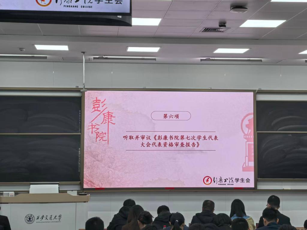 会上,代表们听取了《彭康书院第七次学生代表大会筹备工作报告》,审议并通过《彭康书院第七次学生代表大会代表资格审查报告》《彭康书院第七次学生代表大会提案工作报告(草案)》《西安交通大学彭康书院学生会章程(修正案草案)》《彭康书院班委会考核办法(草案)》等。